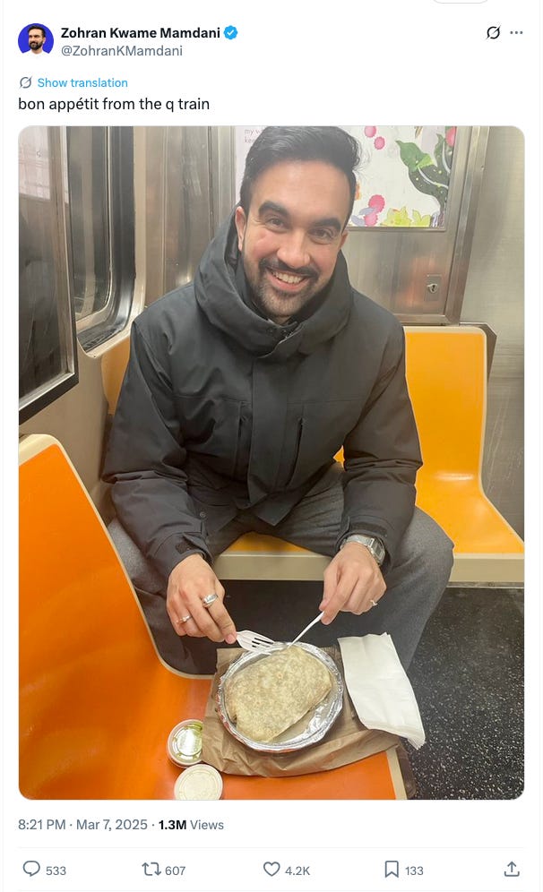 First, Mamdani sparked what the New York Times called a “minor food scandal” in March when he posted a photo of himself eating a burrito on the subway. Even supporters told him that he was out of line.